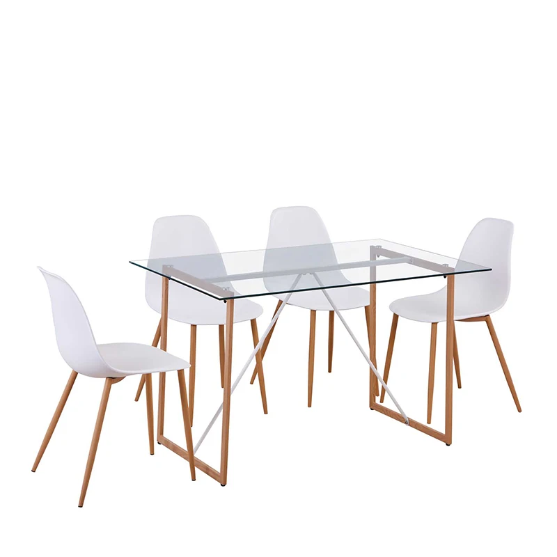 Modern dining table design with glass top.